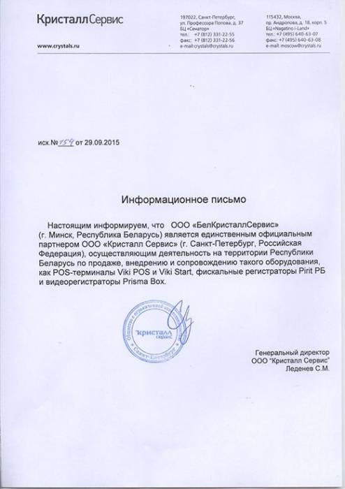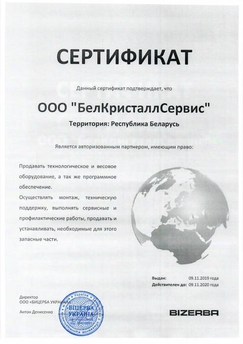 Компания является единственный официальным партнером ООО "Кристалл Сервис" на территории Республики Беларусь