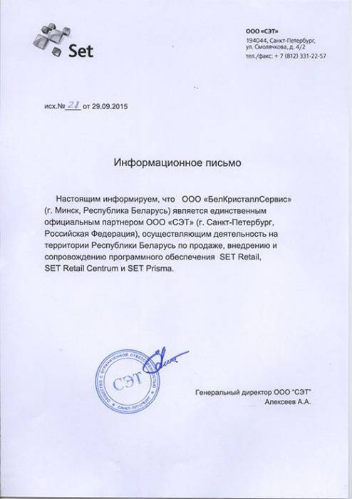 Компания является единственный официальным партнером ООО "СЭТ" на территории Республики Беларусь
