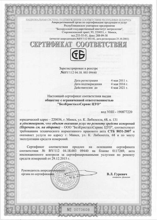 Сертификат соответствия